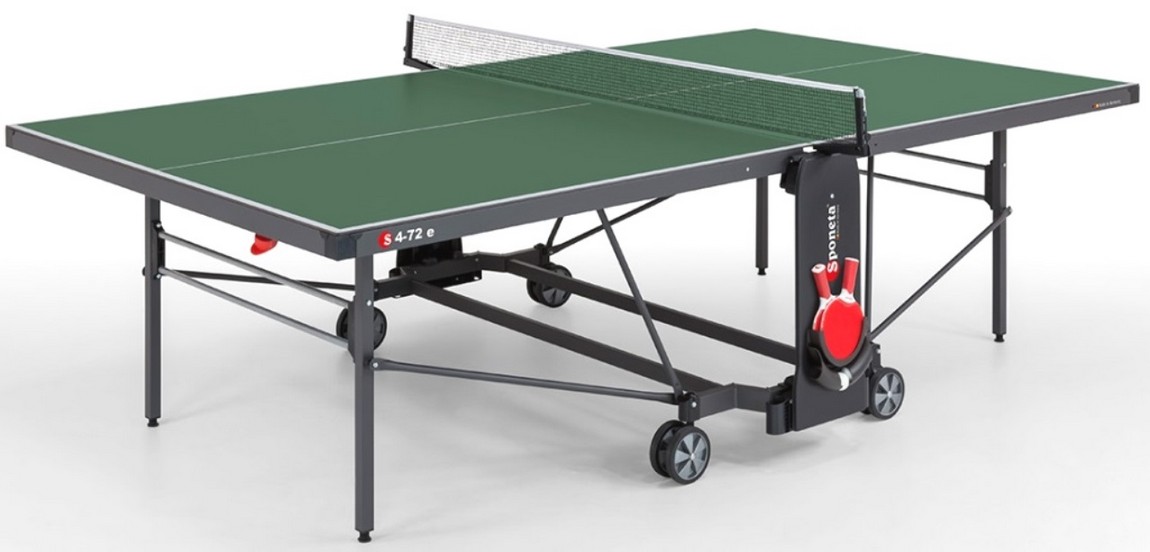 Kompakt hobbi-sport asztal 5 mm melamin asztallappal, feszíthető hálóval, szintezhető lábakkal, kerekekkel. Alacsonyra csukódó. Vízálló, UV-álló.