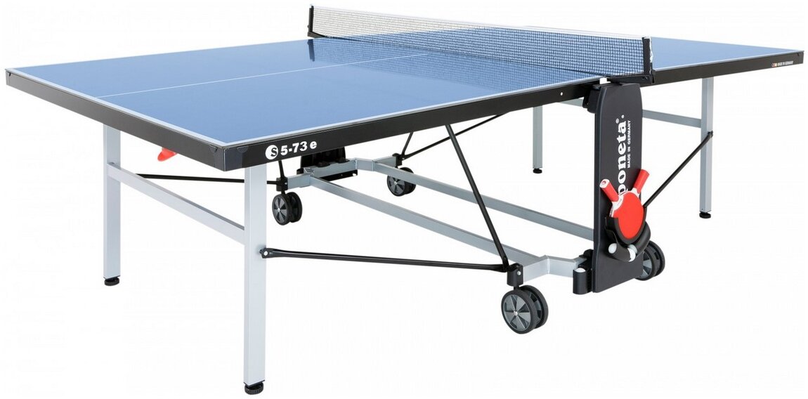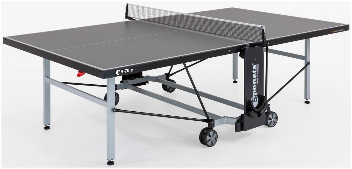 Minőségi, kompakt sport-tréning asztal 6 mm melamin asztallappal, feszíthető hálóval, szintezhető lábakkal, kerekekkel. Alacsonyra csukódó. Vízálló, UV-álló.